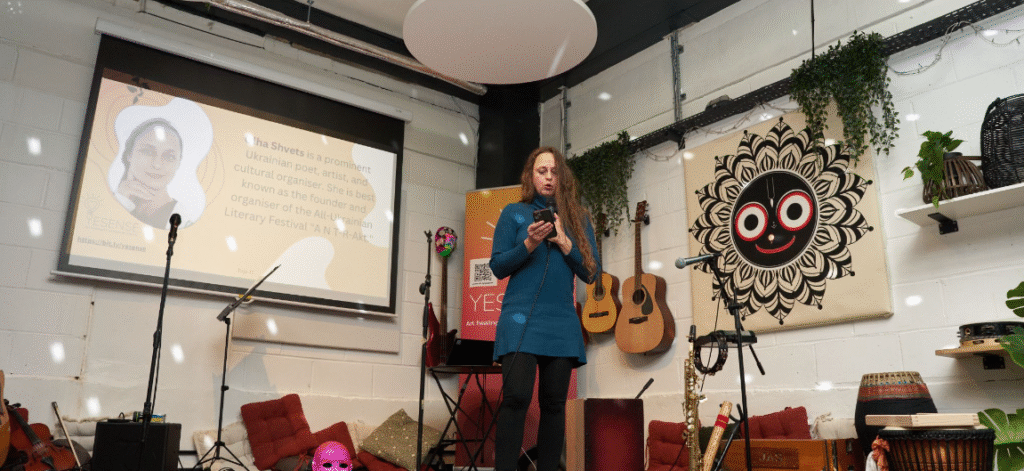 Beyond the musical performances, the evening was enriched by the powerful poetry readings of Olha Shvets and Svyatozar Shvets whose words wove a narrative of resilience, beauty, and human connection.