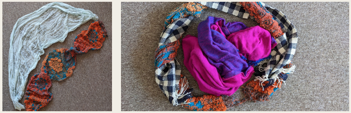 The course of tissue therapy that I lead includes the creation of paintings with fabrics, the creation of hats and much more.