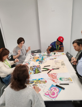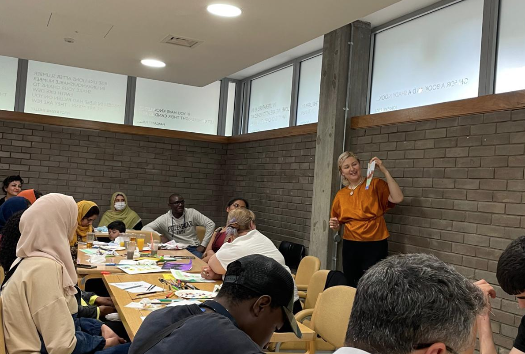Група арт-терапії для українців. Кожне заняття в цій групі унікальне, тому що використовуються різні матеріали: тканина, фольга, голос, казка, пісок і це ще не кінець. Щоразу це щось нове, щоразу нова тема і цікаве завдання. «Тепла група», тому що атмосфера, яка створилася всередині цієї групи, неймовірно тепла і душевна